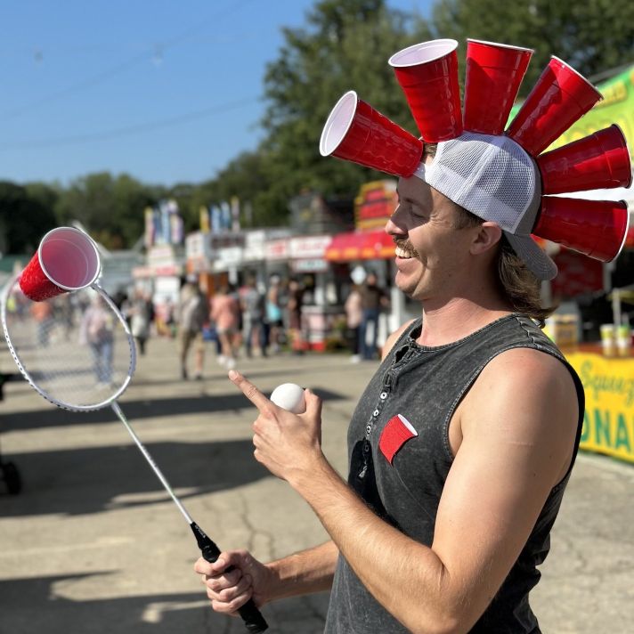 And just when you think your trip to the fair couldn’t get any more unforgettable—enter The Cup Guy! Comedy, unique stunts, backyard shenanigans, and RED CUPS! This one-of-a-kind attraction is packed with laughs, energy, and surprise. From juggling to balancing to full-on unpredictable fun, The Cup Guy delivers a high-energy performance that keeps audiences of all ages coming back for more. Whether he’s stacking, tossing, or turning everyday red cups into hilarious entertainment gold, you won’t want to miss a minute.