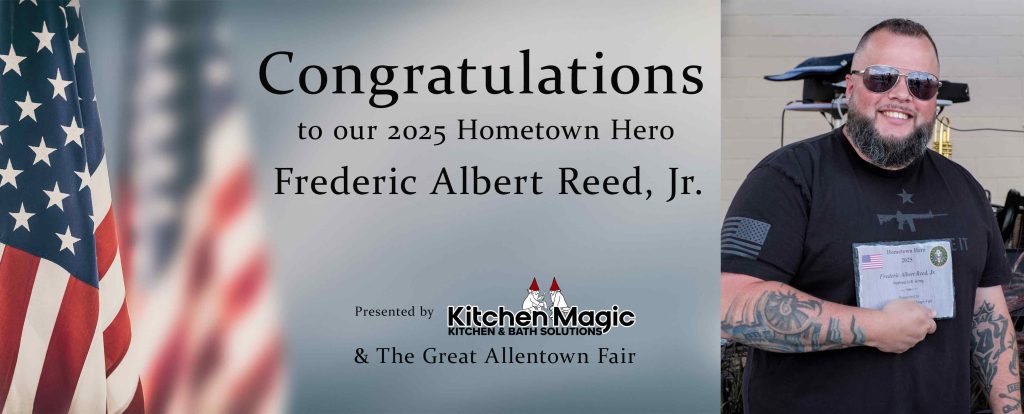 The chosen Hometown Hero will be honored during Kitchen Magic’s Red, White & THANK YOU! Military Day at The Great Allentown Fair on Thursday, August 28, 2025 at 3PM.
